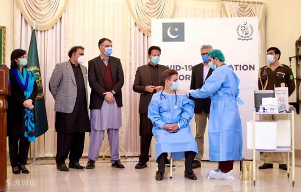 2021年2月1日,中國政府向巴基斯坦捐贈的首批國藥集團中國生物新冠疫苗運抵,2月2日,巴基斯坦啟動(dòng)新冠肺炎疫苗接種工作,在伊斯蘭堡舉行疫苗接種啟動(dòng)儀式。在巴基斯坦總理伊姆蘭•汗的見(jiàn)證下,醫務(wù)人員接種了中國國藥集團生產(chǎn)的新冠肺炎疫苗。