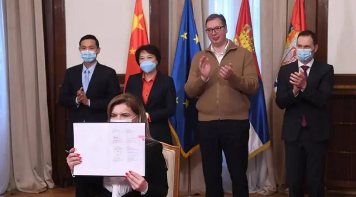 2021年1月16日,塞爾維亞迎來(lái)首批國藥集團中國生物疫苗,塞爾維亞藥品和醫療器械局在科學(xué)審評后,確認國藥集團新冠疫苗的質(zhì)量、有效性與安全性,于18日批準在該國使用該款疫苗,成為首個(gè)使用中國疫苗的歐洲國家。3月18日,塞爾維亞總統武契奇與中國駐塞爾維亞大使陳波在貝爾格萊德見(jiàn)證塞方與國藥集團簽署新冠疫苗采購協(xié)議。4月6日,塞爾維亞總統武契奇接種國藥集團新冠疫苗。
