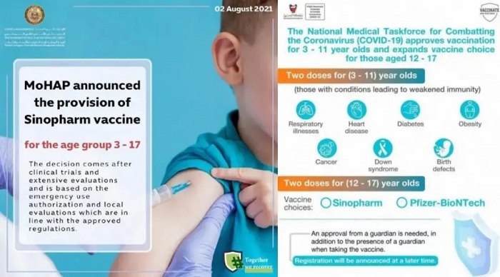 2021年8月2日,阿聯(lián)酋批準國藥集團中國生物生產(chǎn)的新冠疫苗用于本國3-17歲兒童接種。