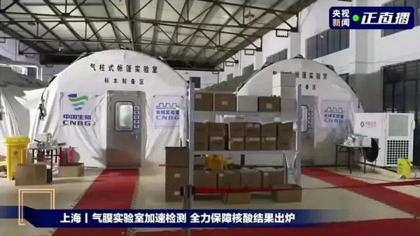 氣膜實(shí)驗室加速檢測,全力保障核酸結果出爐,記者深入報道國藥中生上海捷諾氣膜實(shí)驗室如何快速搭建,助力上海核酸檢測。