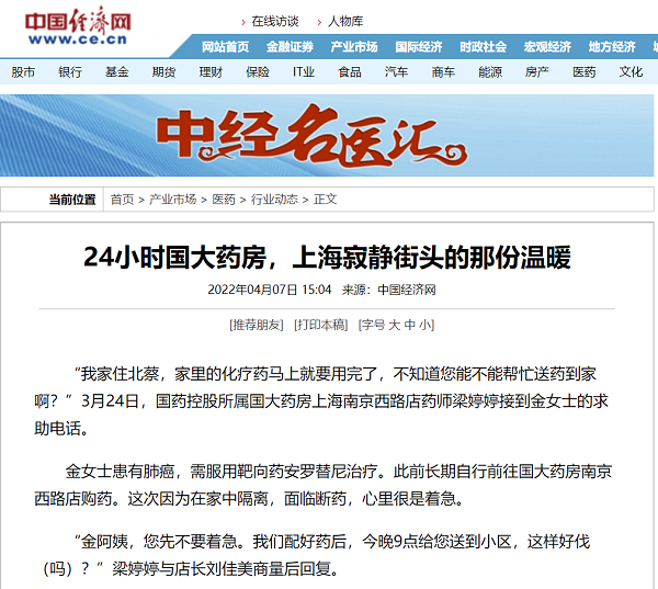 上海疫情發(fā)生后,國藥控股國大藥房為保證廣大市民買(mǎi)到藥品和防疫物資,200余家門(mén)店堅持營(yíng)業(yè),并且根據社區封閉管理規定,為居民建立了“網(wǎng)絡(luò )訂藥、點(diǎn)對點(diǎn)免費送藥”的服務(wù)模式,對不擅長(cháng)使用智能手機的老人群體開(kāi)通了電話(huà)服務(wù)送藥。