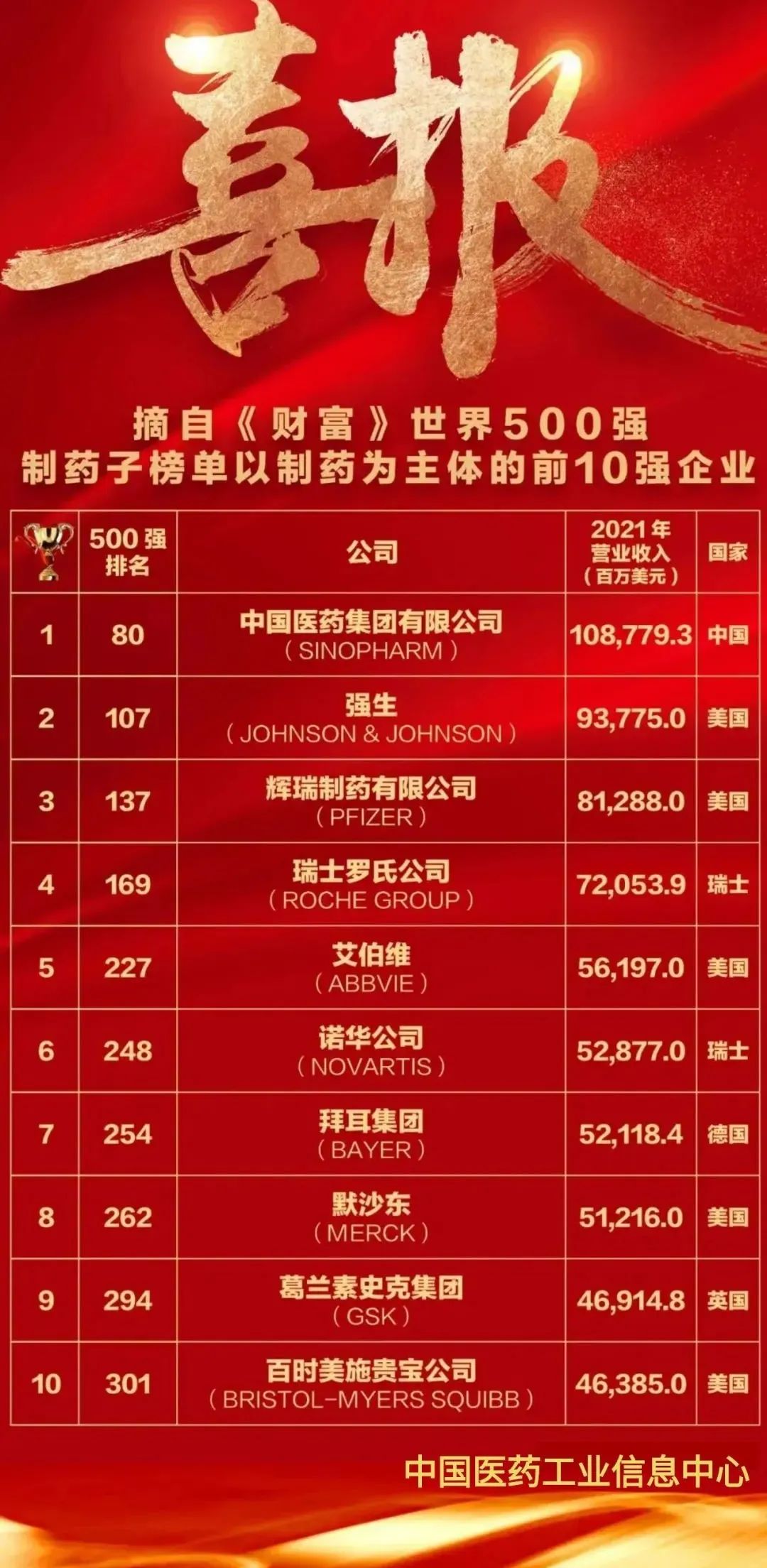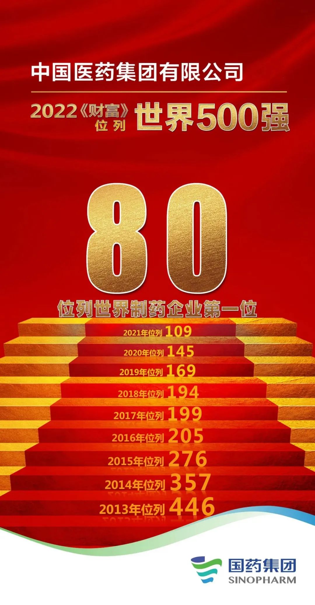 重磅!國藥集團位列世界500強第80位!制藥企業(yè)第1位!