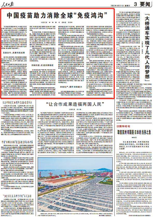 迄今為止,中國有3款新冠疫苗被世界衛生組織納入緊急使用清單,超過(guò)100個(gè)國家批準使用中國生產(chǎn)的疫苗,其中許多國家把中國疫苗作為低齡兒童唯一使用的疫苗。中國新冠疫苗持續為全球抗疫作出積極貢獻,助力消除“免疫鴻溝”。