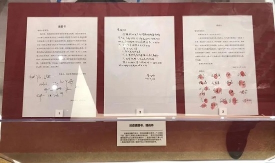 國藥集團新冠疫苗智慧生產(chǎn)車(chē)間模型與援滬醫療隊請戰書(shū)展出(左一、左二展示臺)。