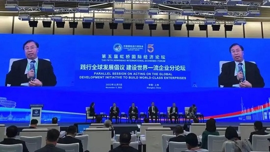 11月5日下午,劉敬楨董事長(cháng)與董增賀副總經(jīng)理應邀出席第五屆虹橋國際經(jīng)濟論壇“踐行全球發(fā)展倡議,建設世界一流企業(yè)”分論壇。論壇由商務(wù)部、國務(wù)院國資委、聯(lián)合國全球契約組織聯(lián)合主辦。國務(wù)院國資委黨委委員、秘書(shū)長(cháng)彭華崗,聯(lián)合國助理秘書(shū)長(cháng)、聯(lián)合國全球契約組織總干事桑達·奧佳博出席并致辭。劉敬楨董事長(cháng)受邀參加“踐行全球發(fā)展倡議,建設世界一流企業(yè)”行動(dòng)計劃及成果發(fā)布,與中外知名企業(yè)、國際組織負責人及知名專(zhuān)家學(xué)者就“攜手抗疫、維護全球產(chǎn)業(yè)供應鏈穩定、加強交流合作”等方面進(jìn)行研討。