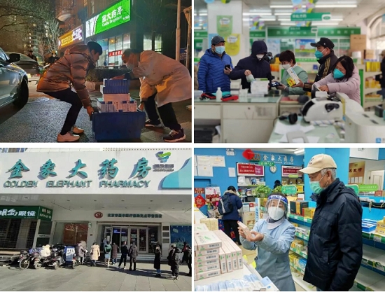 藥店是服務(wù)群眾最直接的窗口單位。近期購藥需求激增,一線(xiàn)藥店迎來(lái)嚴峻考驗。面對時(shí)間緊、任務(wù)重以及非戰斗減員的壓力,北京國大金象開(kāi)通綠色通道,加速商品資質(zhì)審核,依據日報確定庫存商品分配原則。抽調管理人員520余人次支援物流,每天深夜將防疫藥品配送到店,所有門(mén)店均安排夜間值守和網(wǎng)上購藥,24小時(shí)服務(wù)人民群眾。